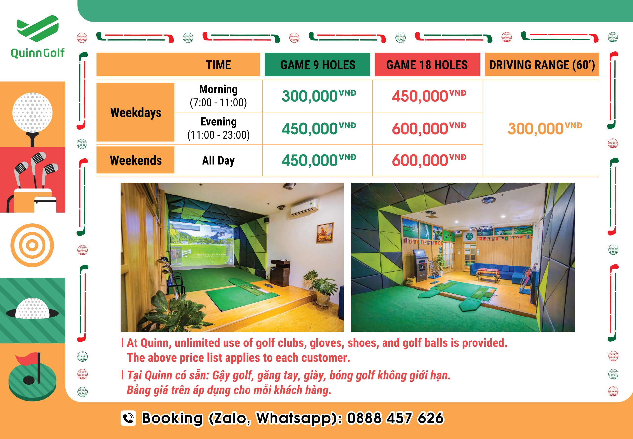 bảng giá chơi golf 30 tại quinn Golfzon golf price list 30 at quinn golfzon